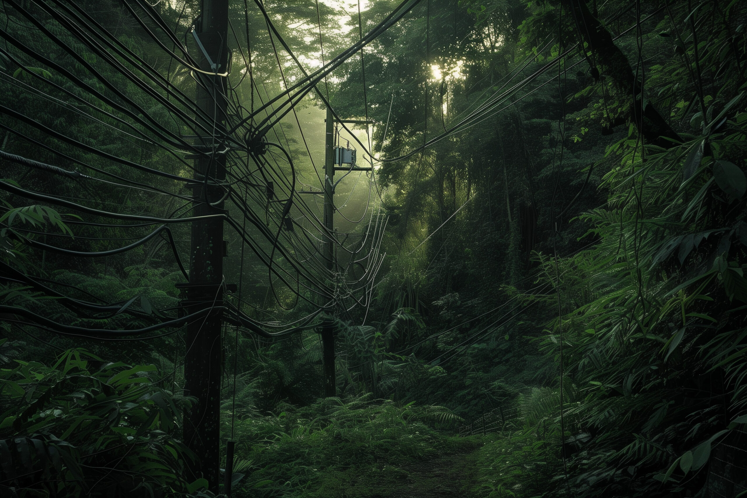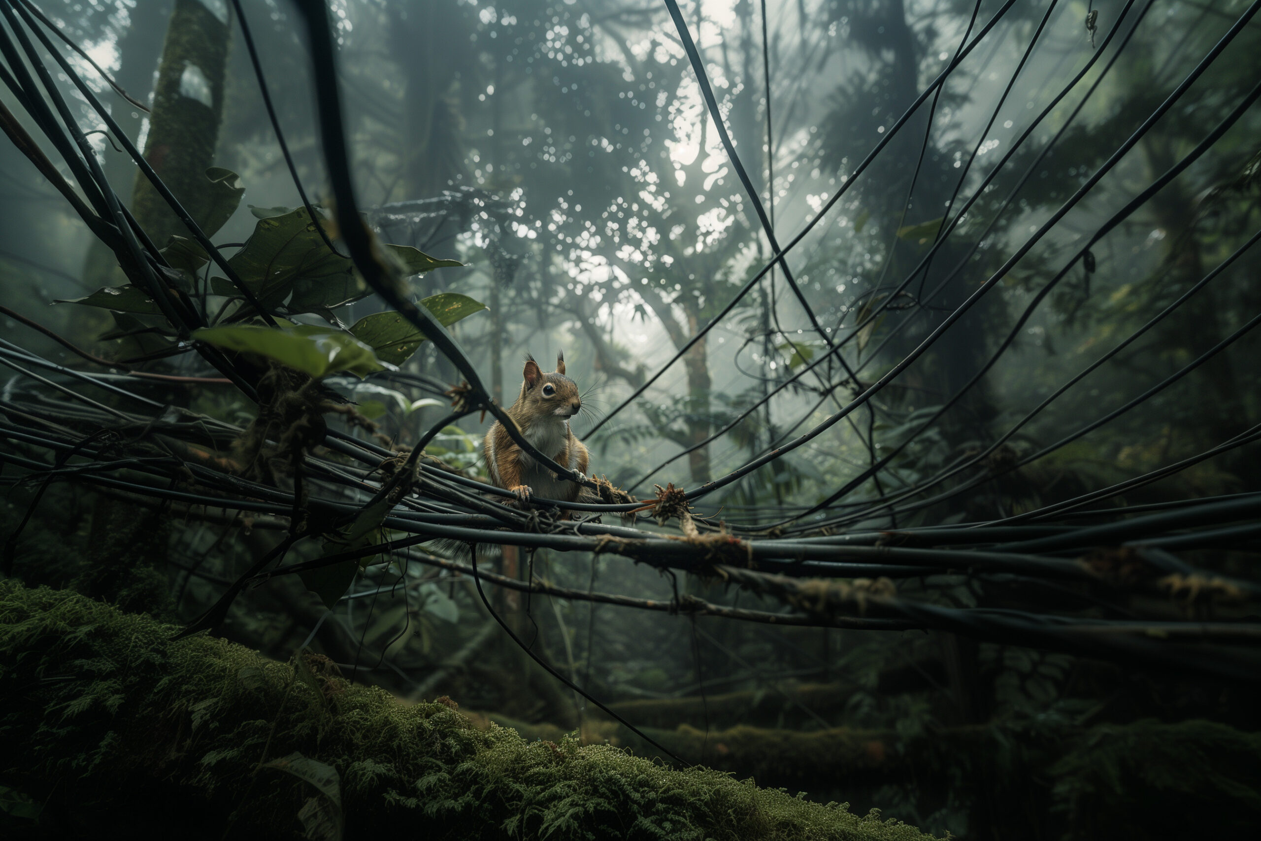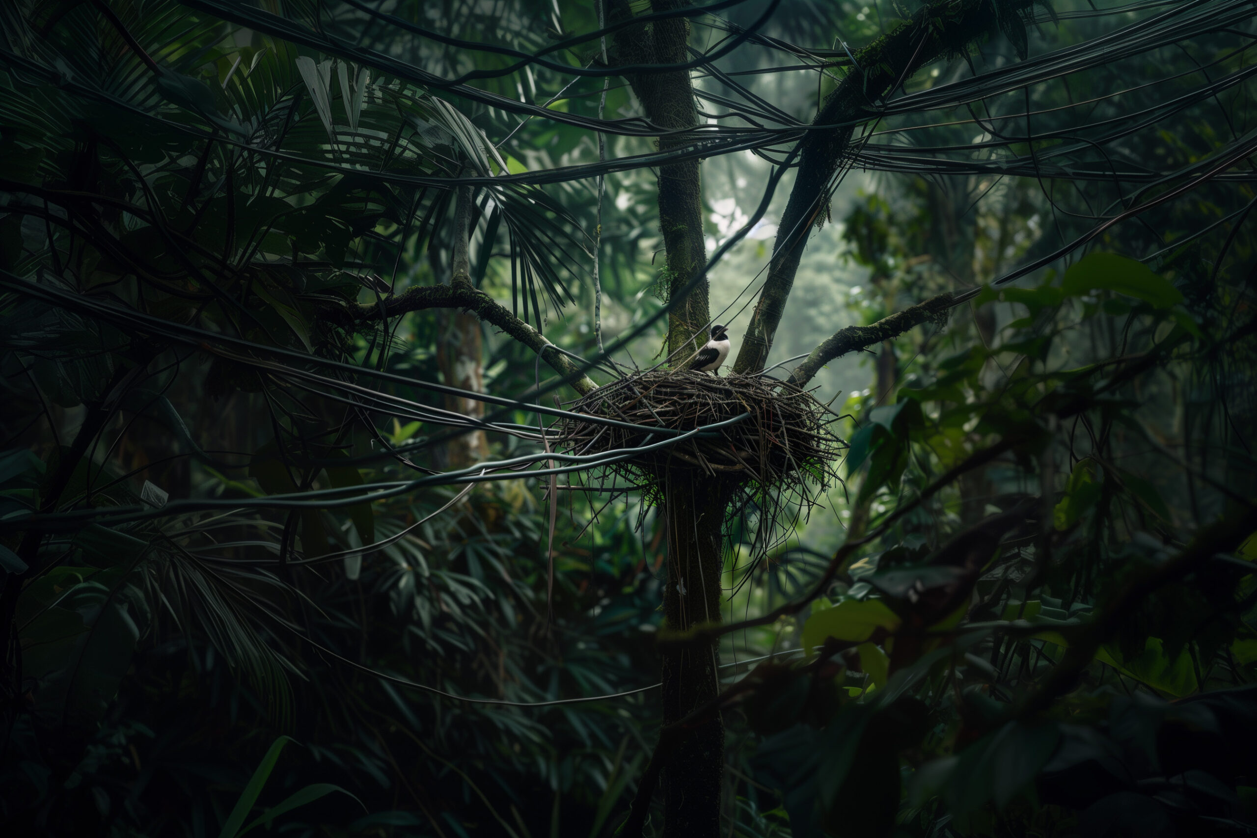 El ensayo fotográfico que presento es una creación en la que he utilizado inteligencia artificial (AI) para fusionar imágenes de árboles y elementos creados por el ser humano como lo son el cableado eléctrico. A través de esta mezcla, quiero resaltar cómo ambos mundos, tan distintos pero similares, se entrelazan gradualmente hasta el punto en que los animales ya no podrán distinguir entre la naturaleza y la creación humana. Las imágenes fueron creadas a partir de fotografías propias e inspiraciones de los lugares que visité en Guanacaste.